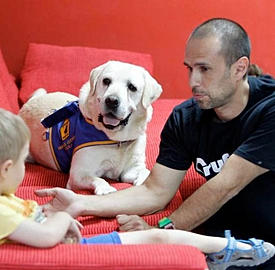 cães de assistência são o labrador e golden retriever pela sua natureza afável,